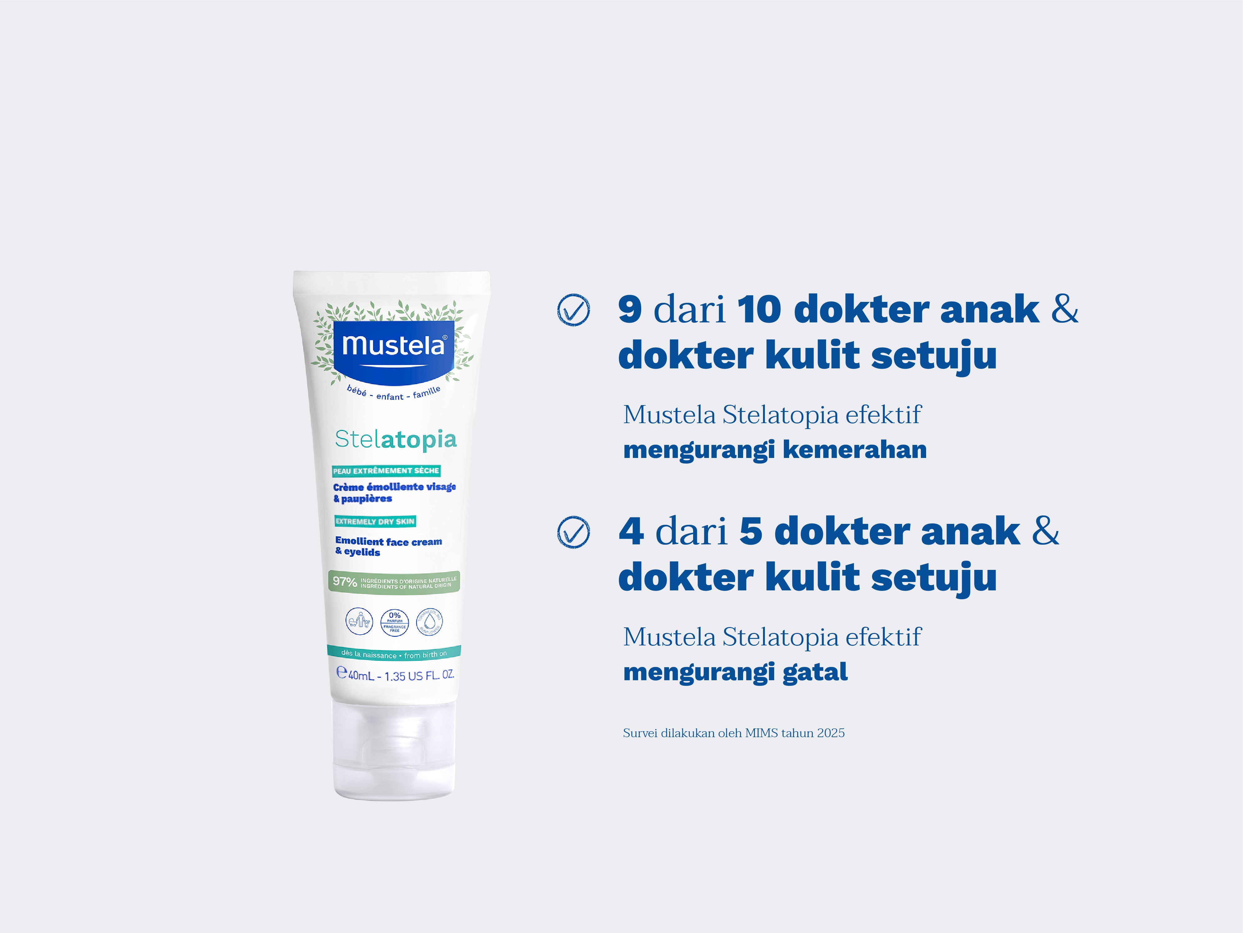 (2)Studi klinis (self-assessment) dilakukan di bawah pengawasan dokter kulit dan dokter anak pada 75 bayi dan anak dengan kulit atopik, selama 28 hari